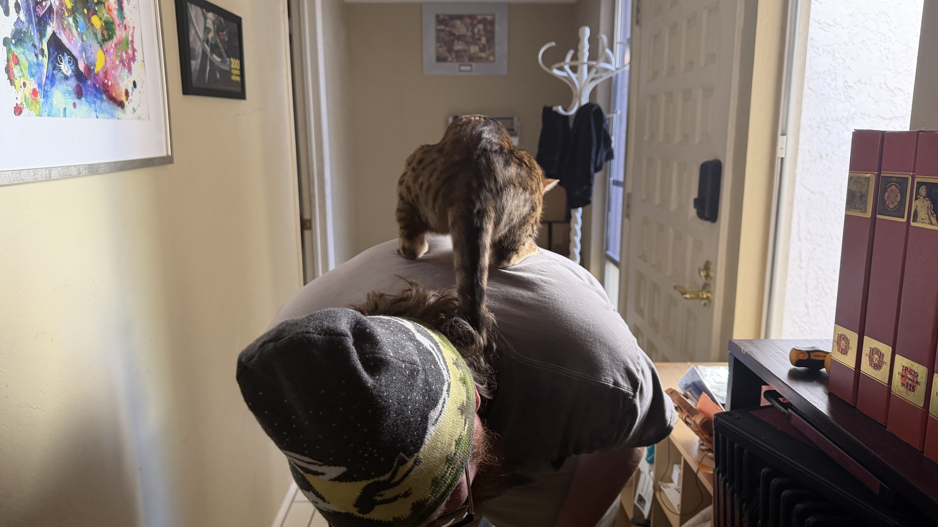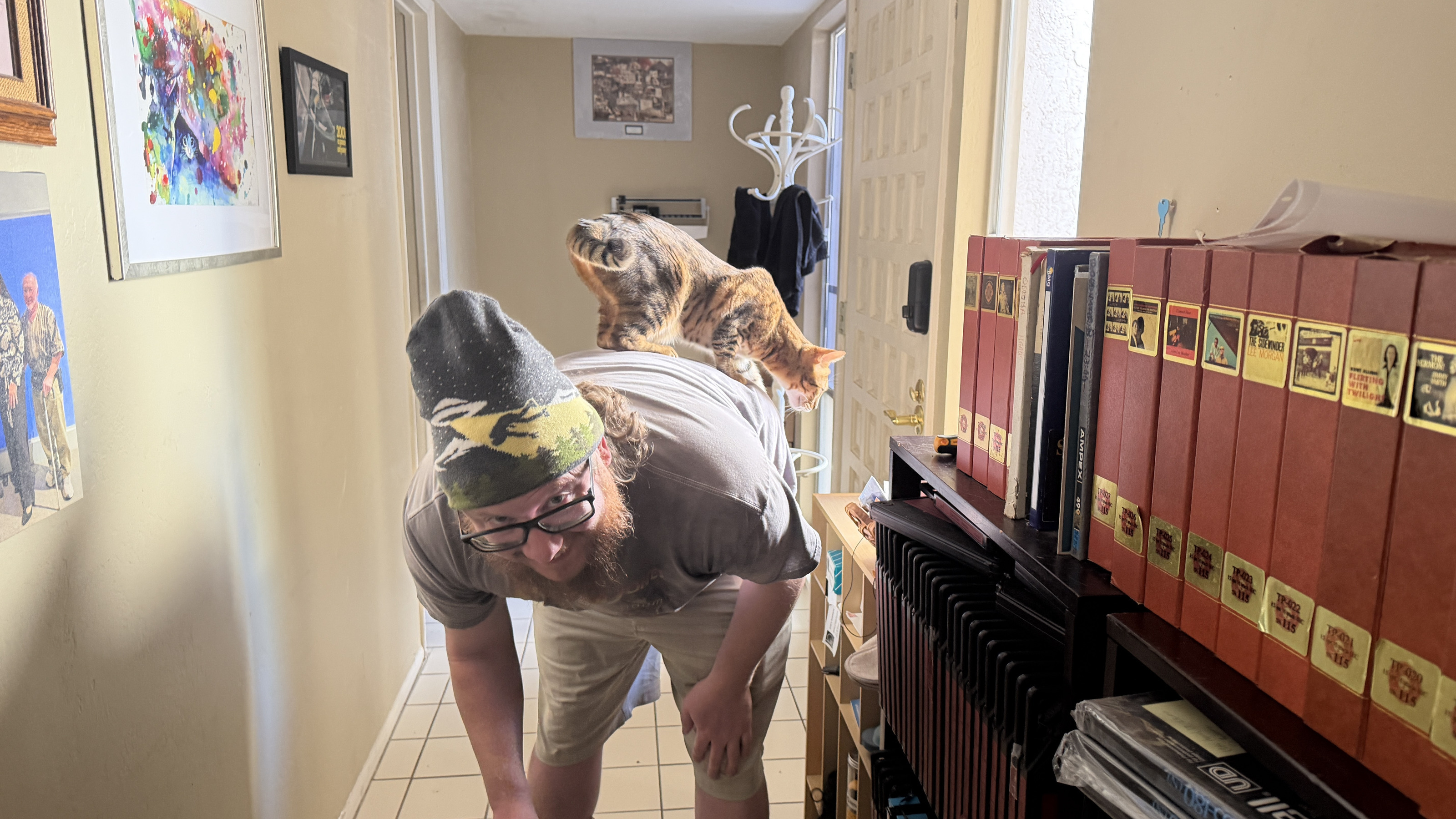 14. Noah and cat Pickle on his shoulders