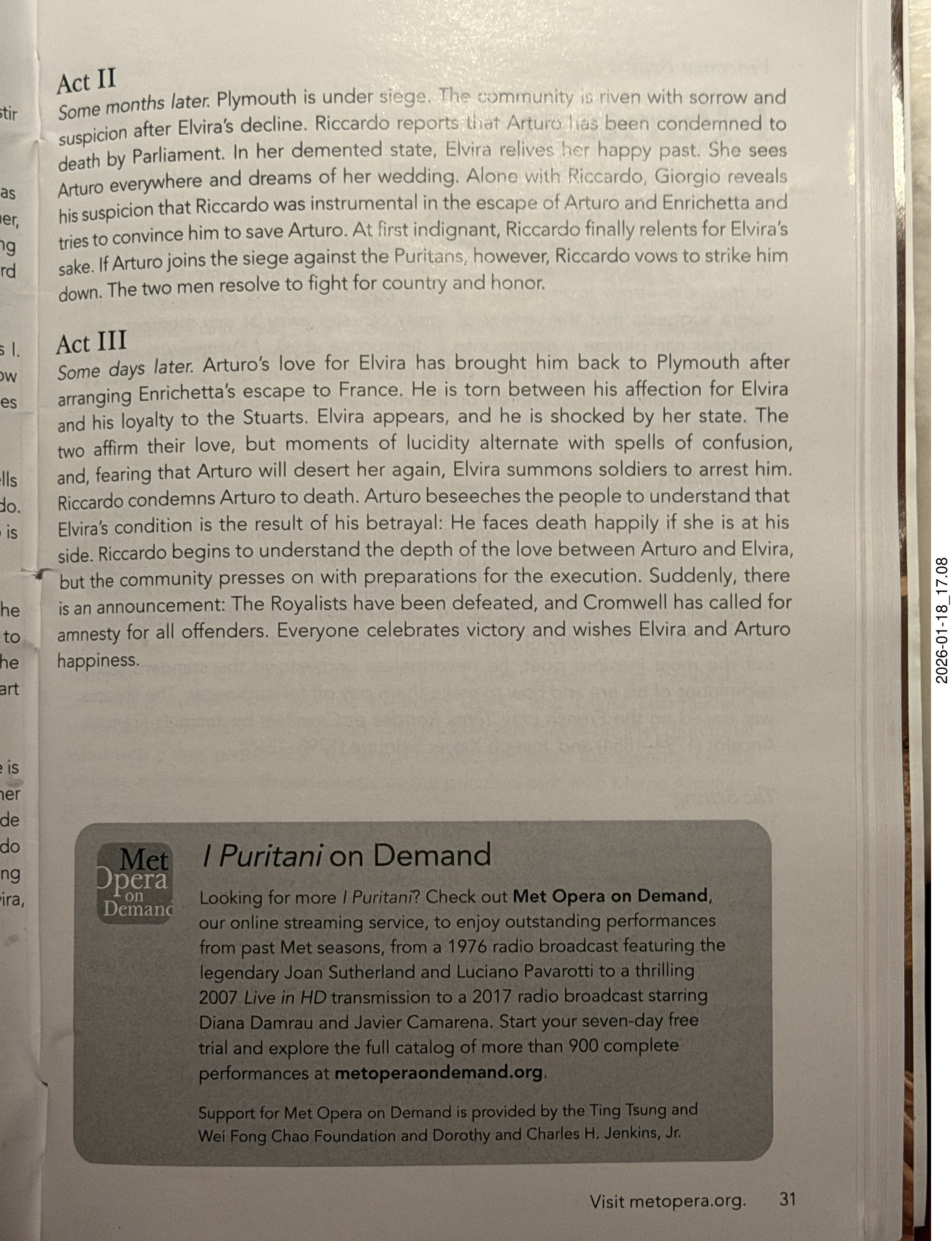 2026 January 20, Tuesday, crl-7ok.jpg * New York City - Manhattan - Lincoln Center - Metropolitan Opera - I Puritani - program