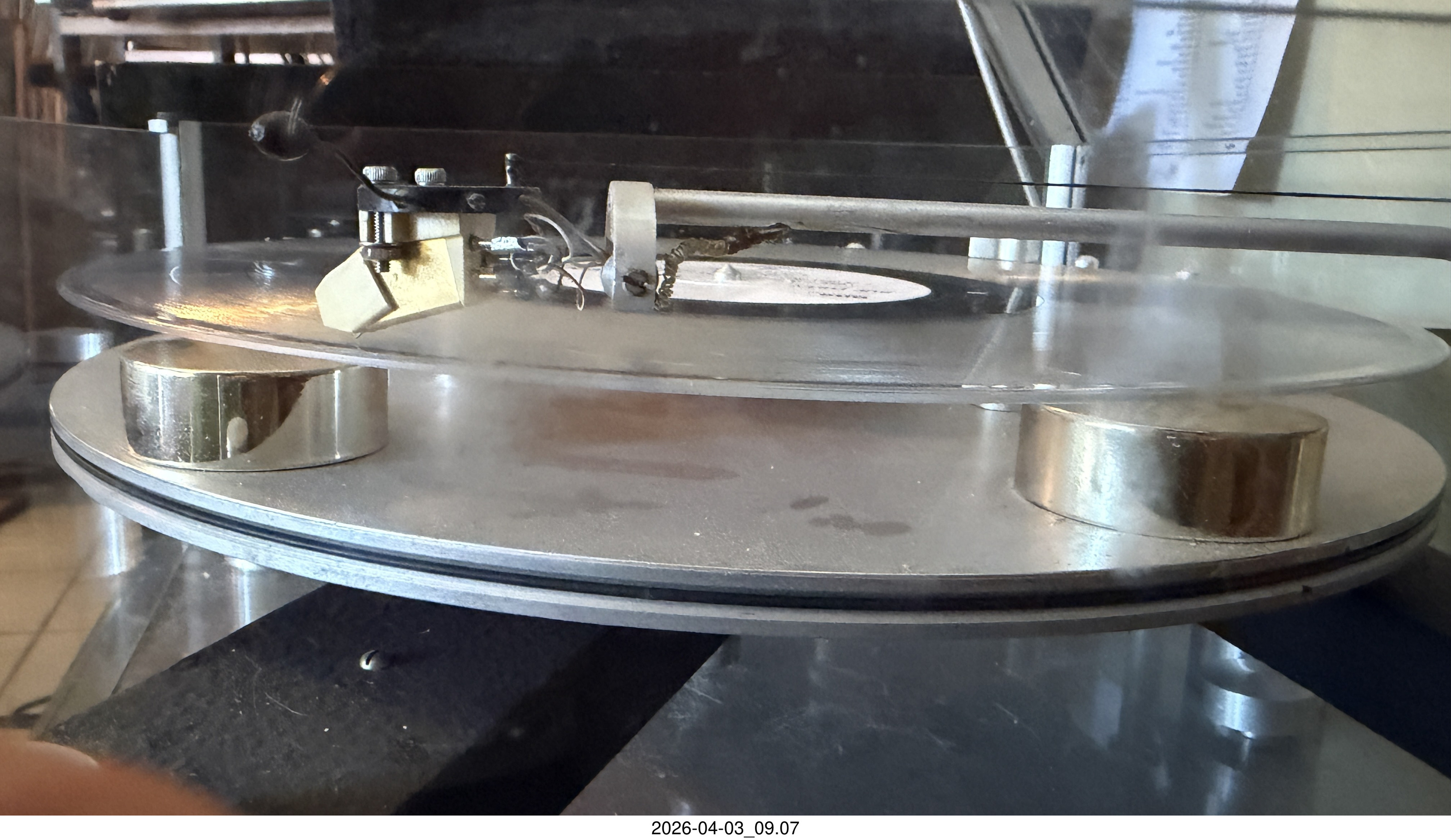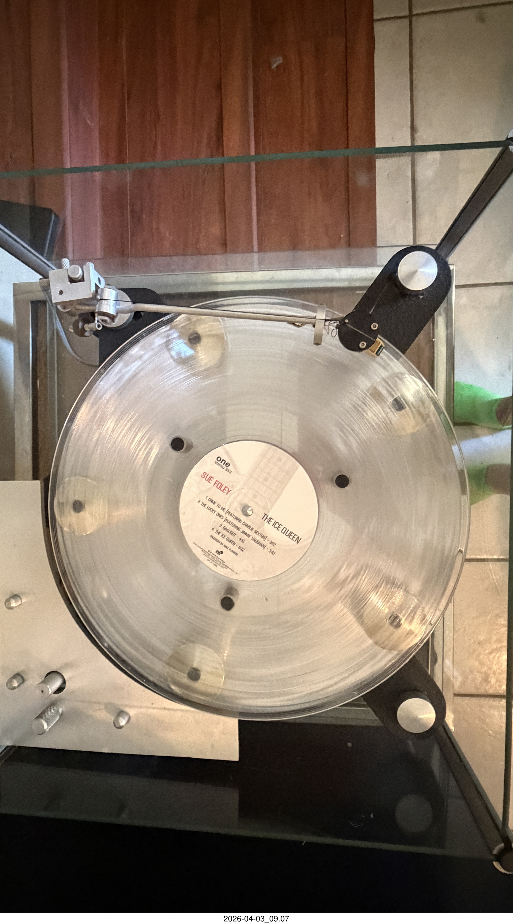 2026 April 5, Sunday, cu5-axn.jpg * Transcriptor Skeleton turntable and Vestigal tonearm with clear vinyl record