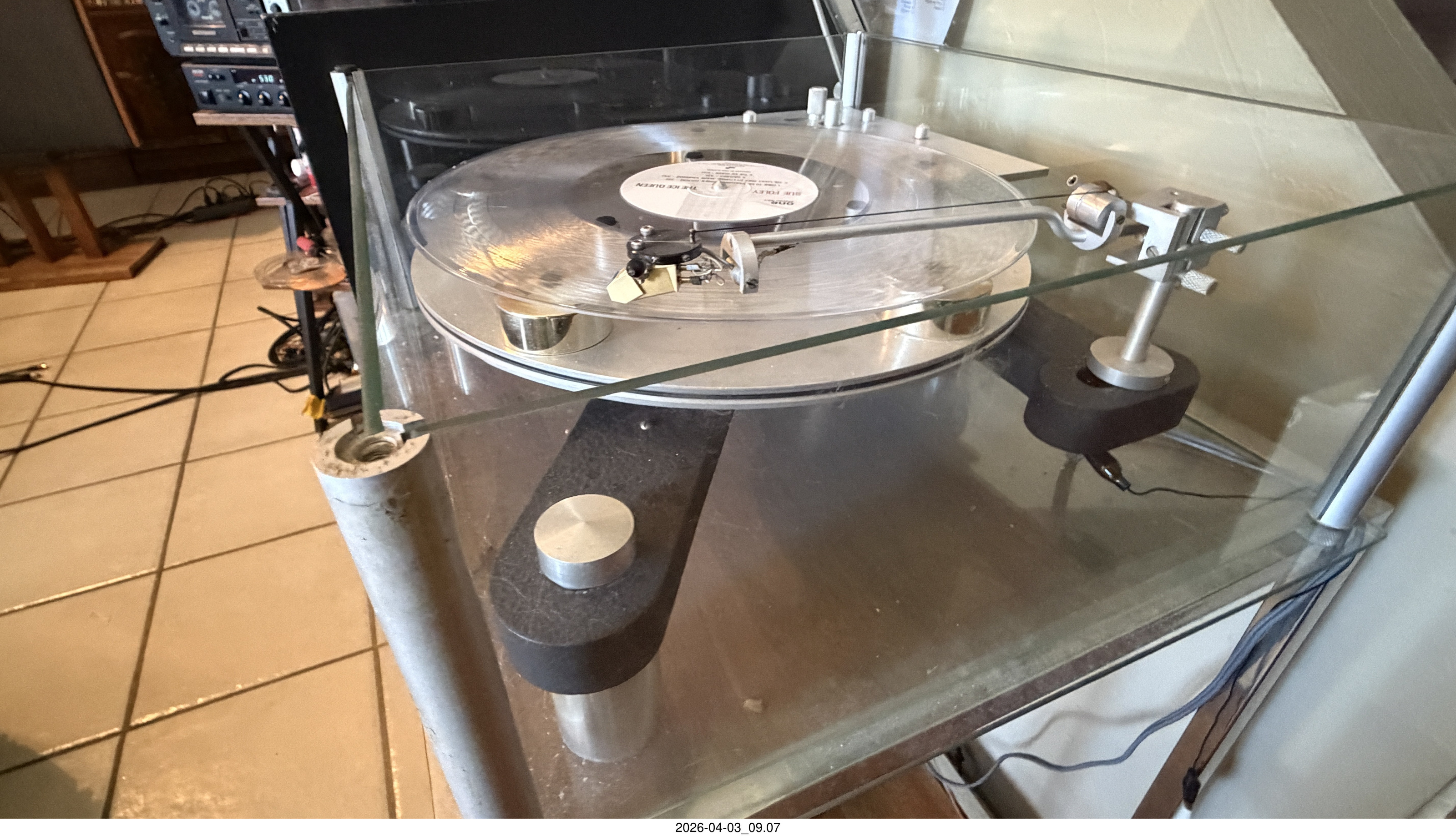 2026 April 5, Sunday, cu5-axq.jpg * Transcriptor Skeleton turntable and Vestigal tonearm with clear vinyl record