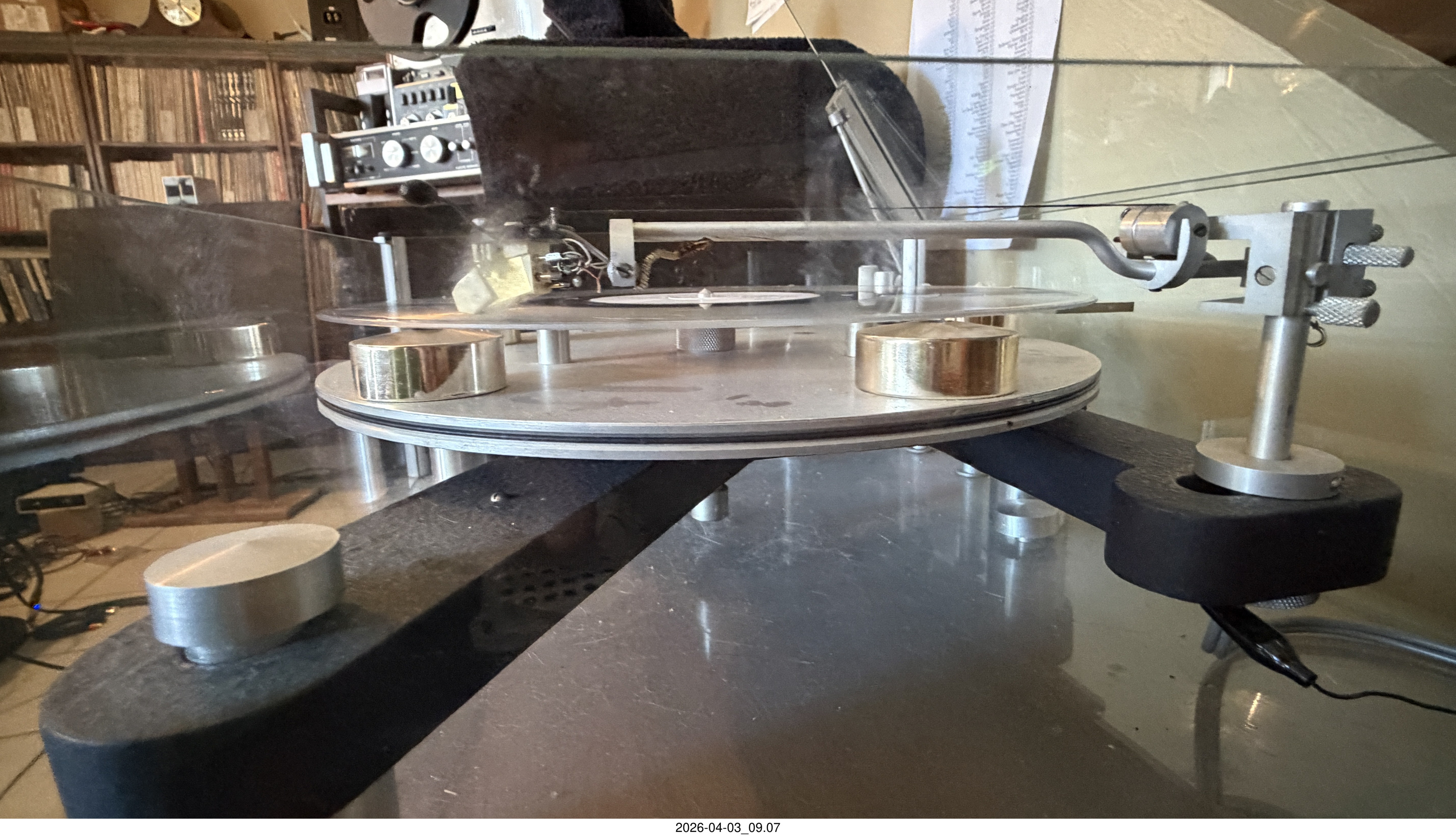 2026 April 5, Sunday, cu5-axi.jpg * Transcriptor Skeleton turntable and Vestigal tonearm with clear vinyl record