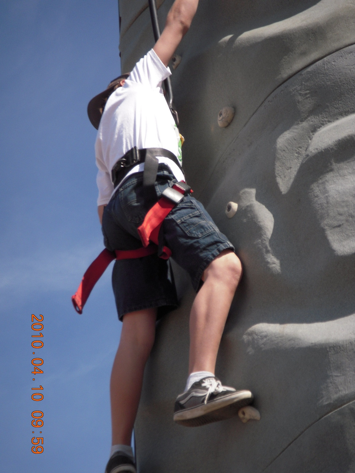 2781. Gila Bend (E63) fly in - young guy climbing 'plastic pigs's nose' rocks