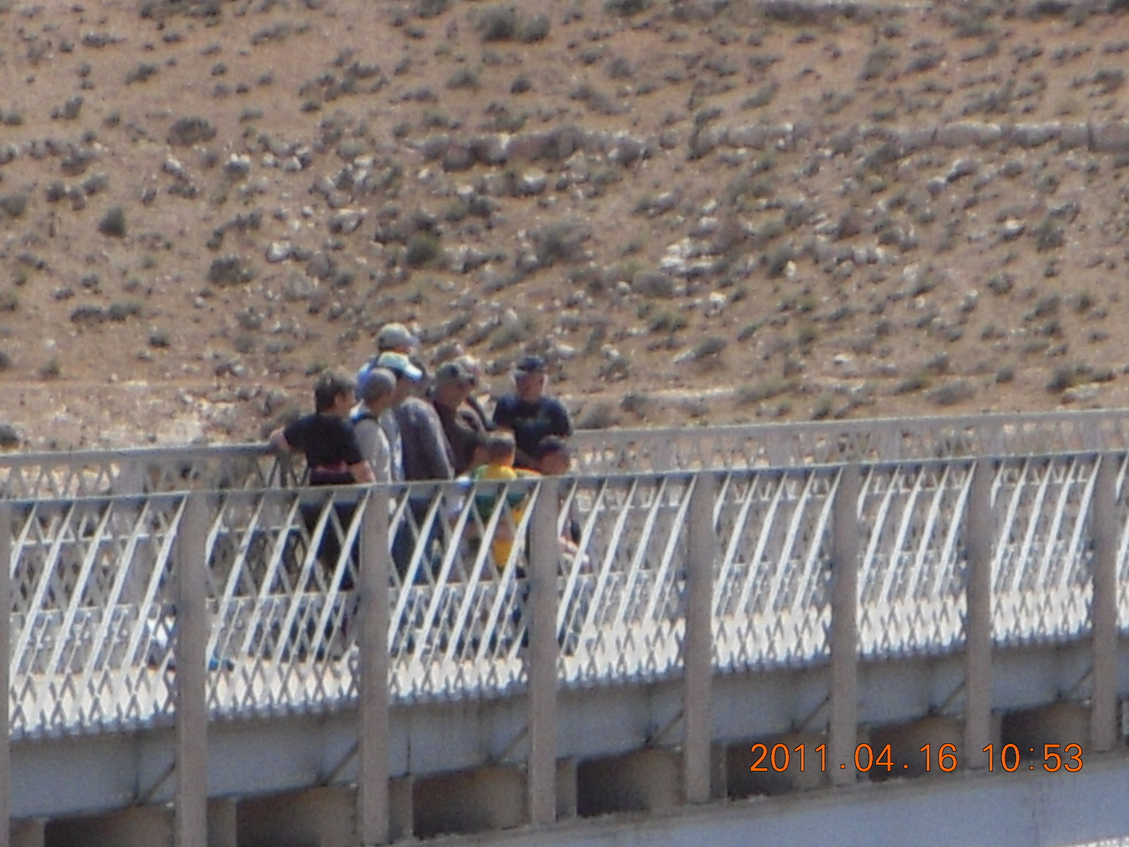 530. Marble Canyon - taking a group picture on Navajo Bridge