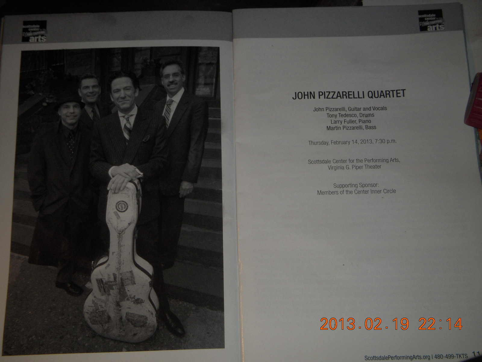 Scottsdale Arts: John Pizzarella program autographed copy of John Pizzarelli 'Double Exposure'