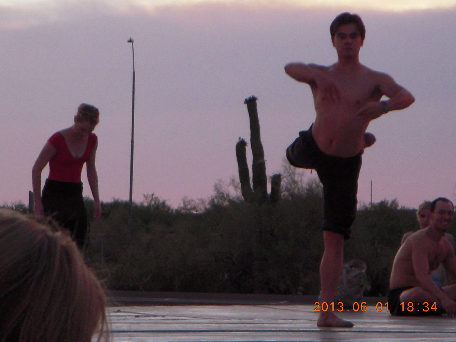 ballet dancers warming up for Topia Negrito work party - picking up rocks