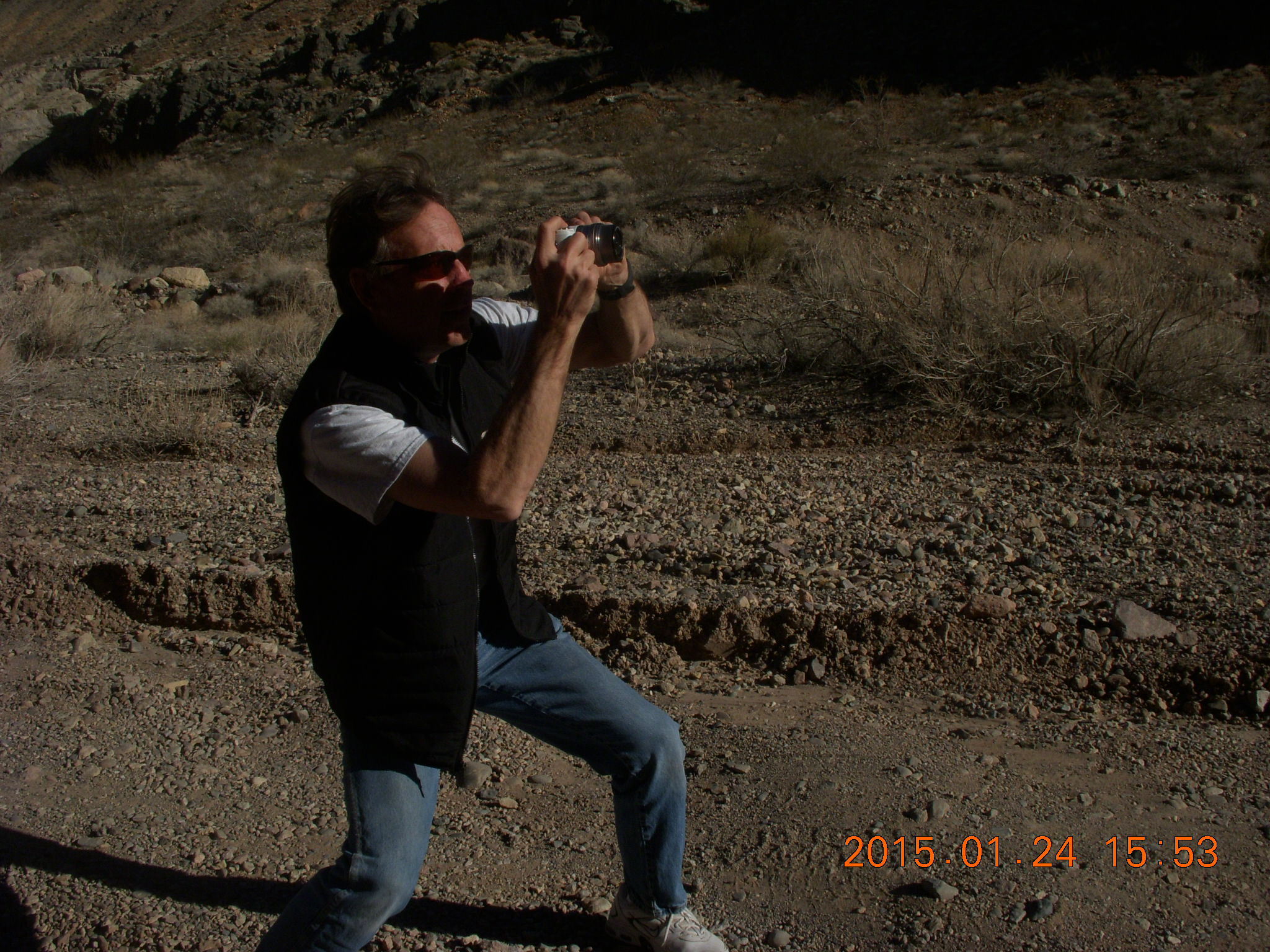 Death Valley - Titus Canyon drive - Brad taking a picture Porcupine Rim mountain-biking trail hike - bike tunnel