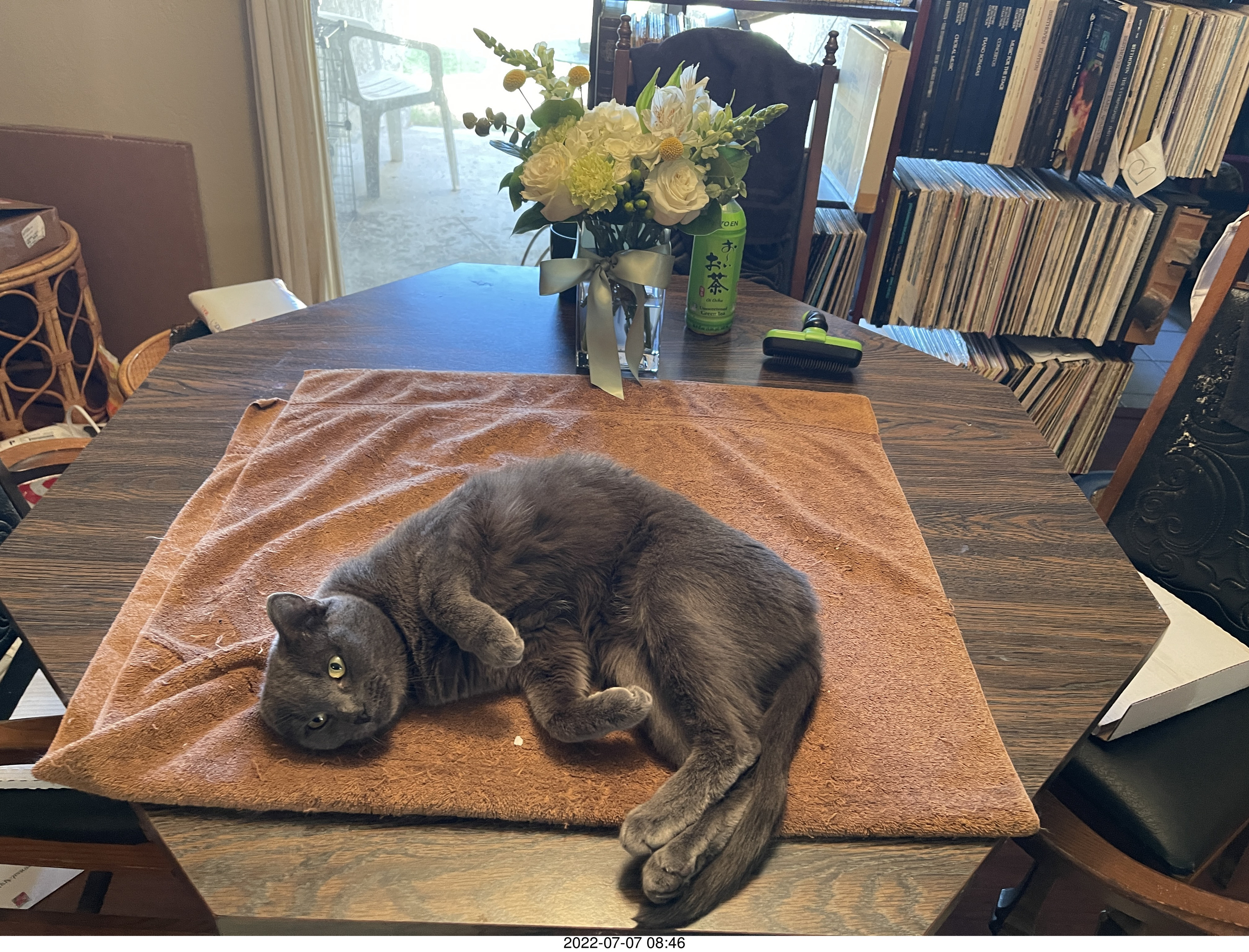 916. my cat Jane and floral arrangement