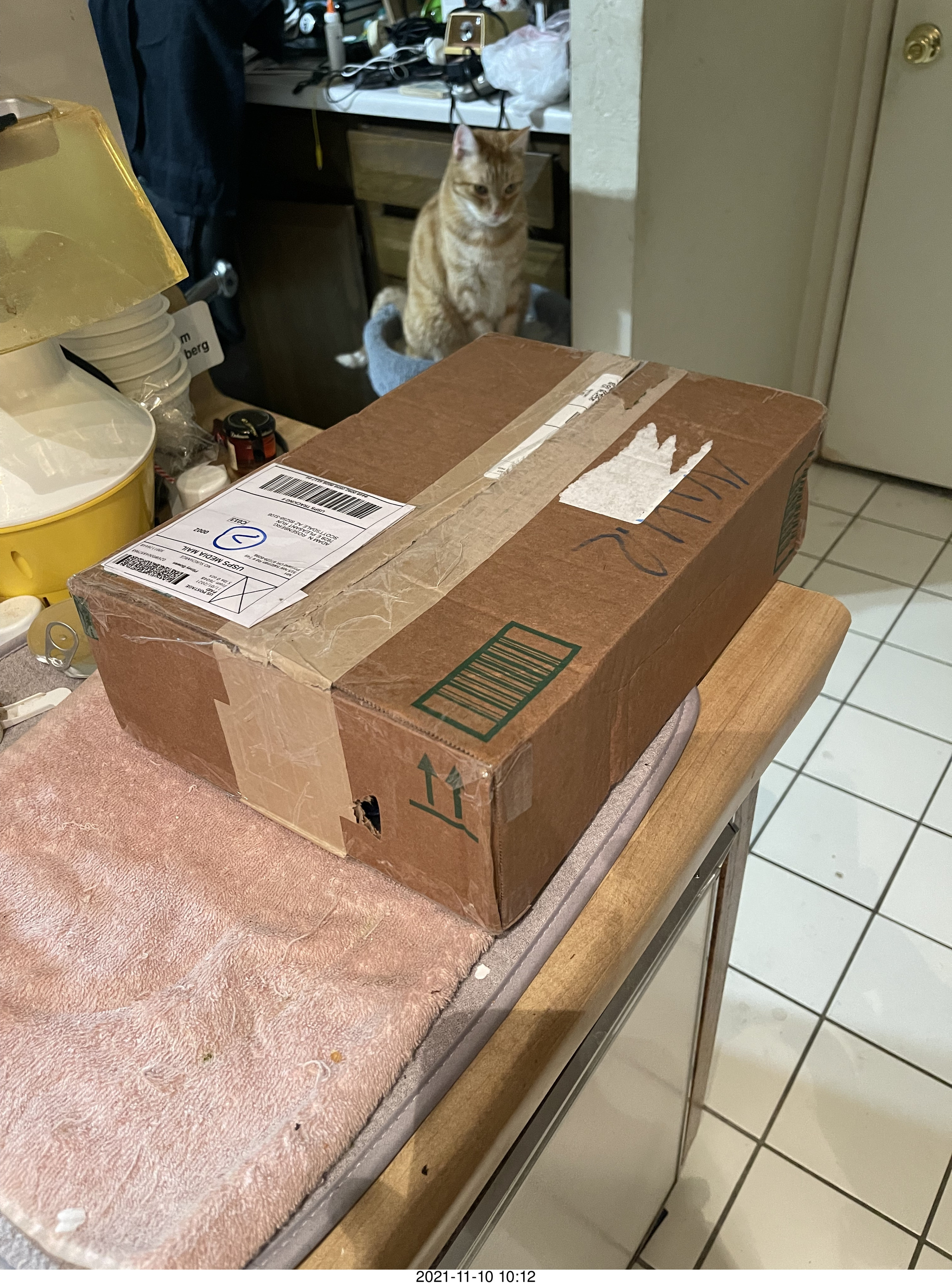 145. my cat Miss Pris on my reel tapes