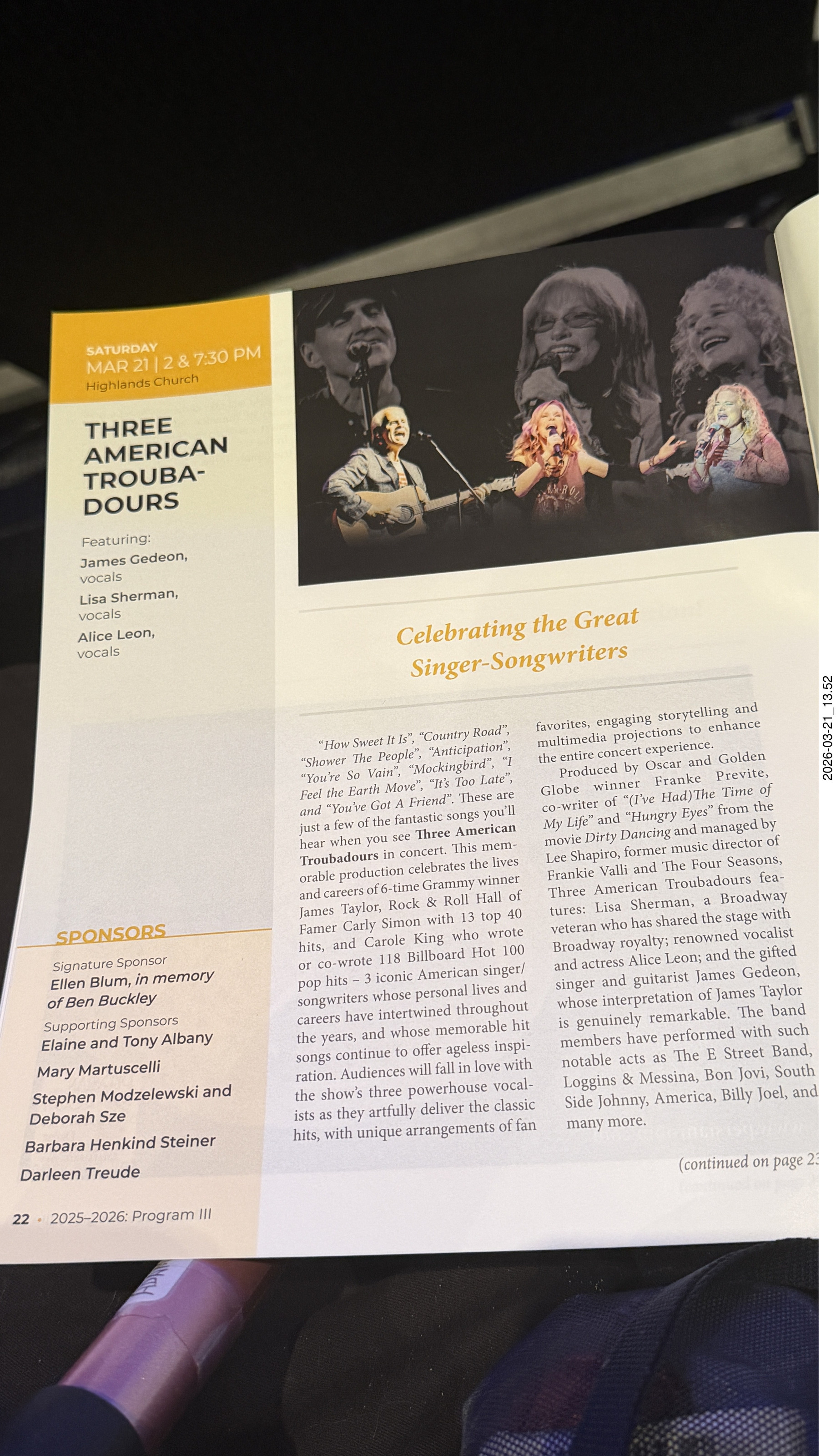 3. Arizona Musicfest - Three American Troubadours - program