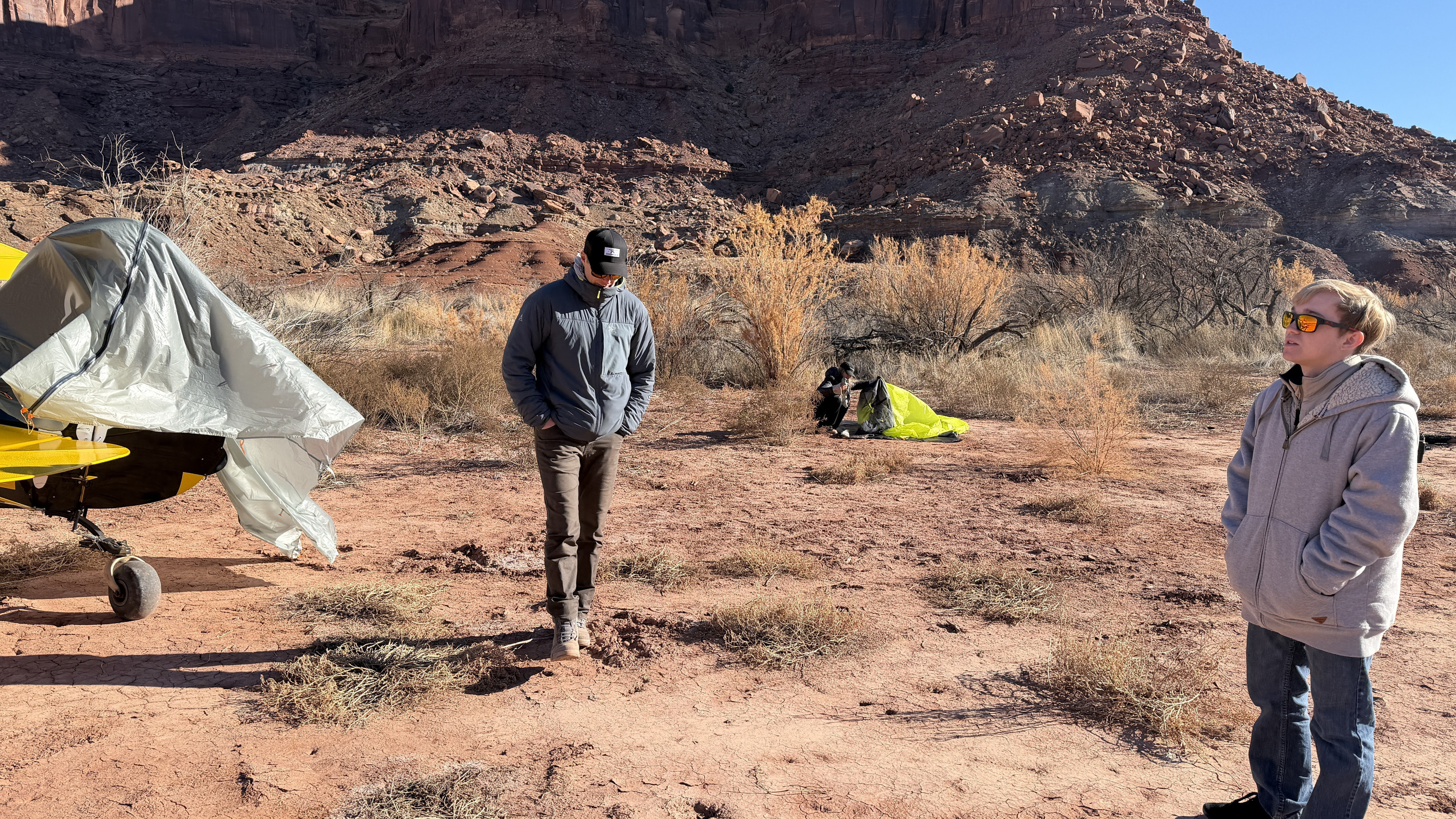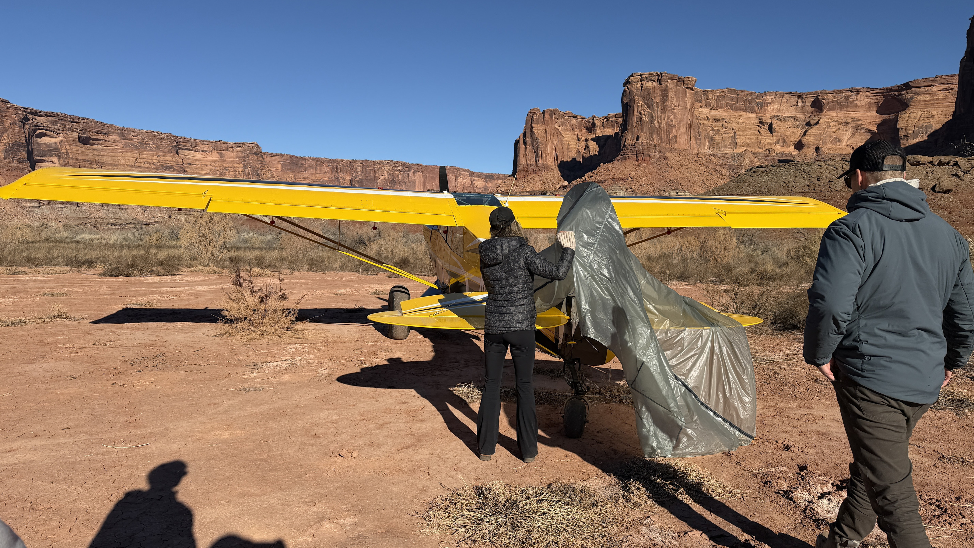 2025 December 13, Saturday, cqd-ane.jpg * Utah - Mineral Canyon airstrip - yellow Husky NII8WY pilot and Tyler