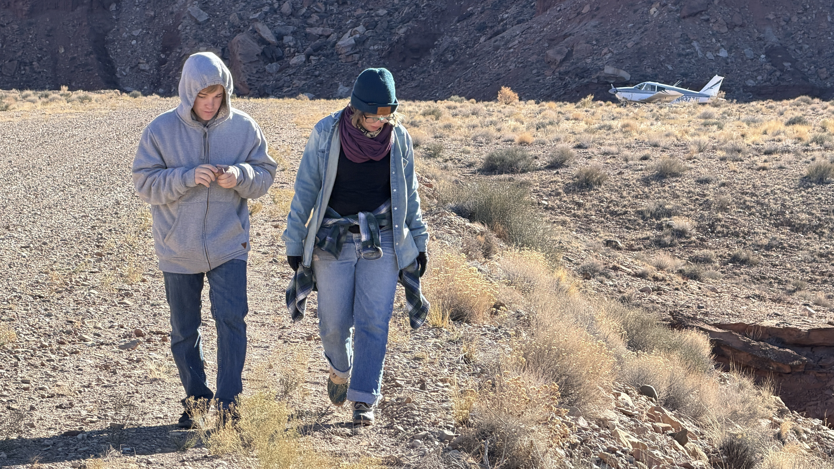 2025 December 13, Saturday, cqd-and.jpg * Utah - Mineral Canyon airstrip - yellow Husky NII8WY pilot and Tyler