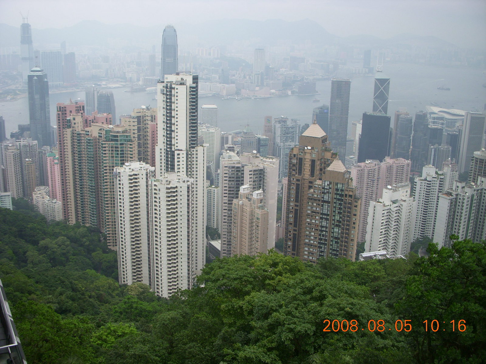 Our half-day tour began with a drive up Victoria Peak with Maggie, our tour guide for the morning. Our coach climbed and climbed the cloudy roadway and we got to the top where we saw a few boats in a bay. Then we walked around to the other side where we looked down on the magnificent Hong Kong skyscrapers.