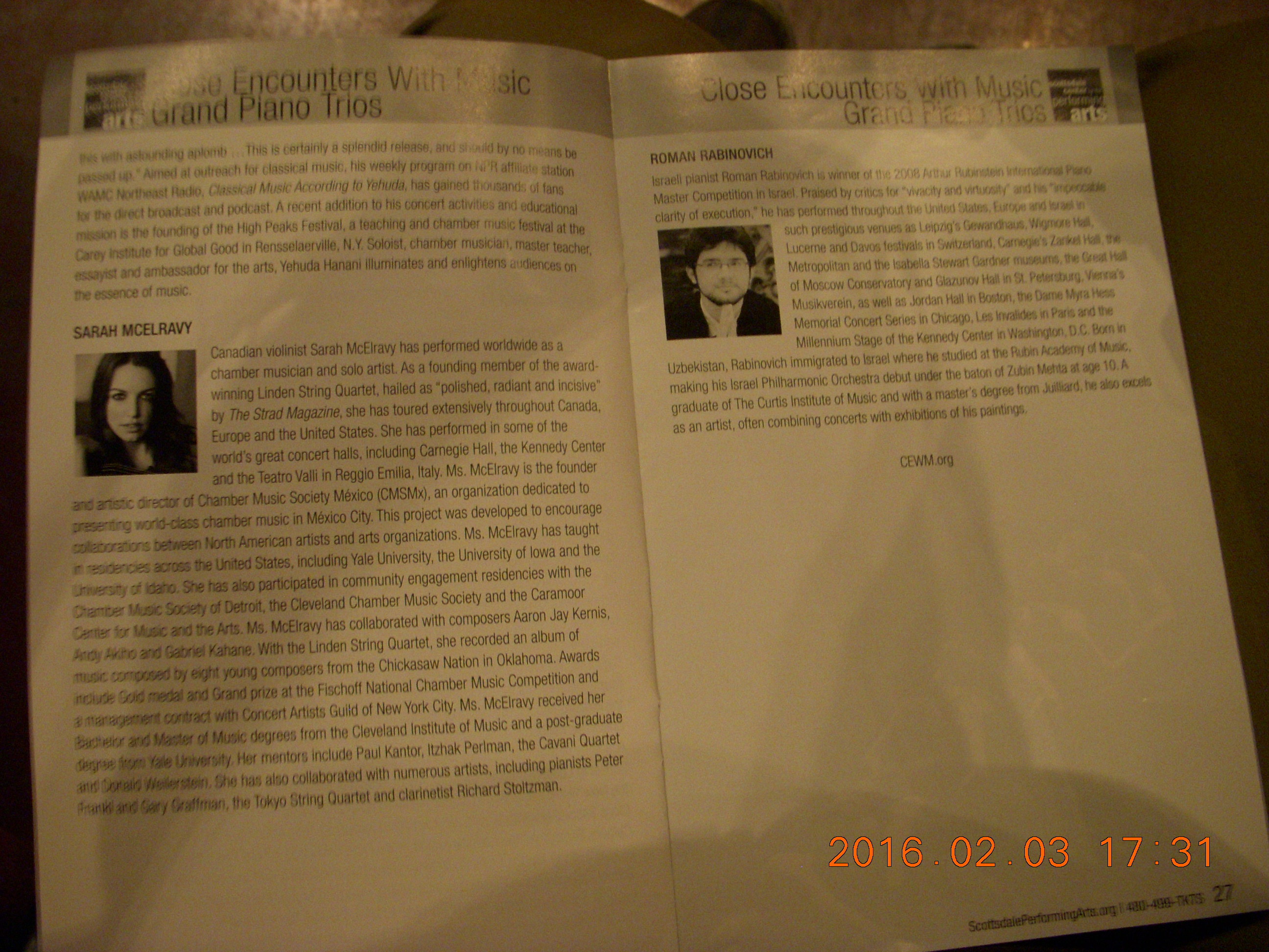7750. Scottsdale - Close Encounters with Great Music - piano trios program (with Sarah McElravy violin)