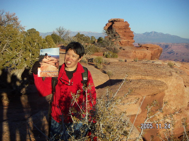 222. Canyonlands National Park -- geologist with picture of knobby rock