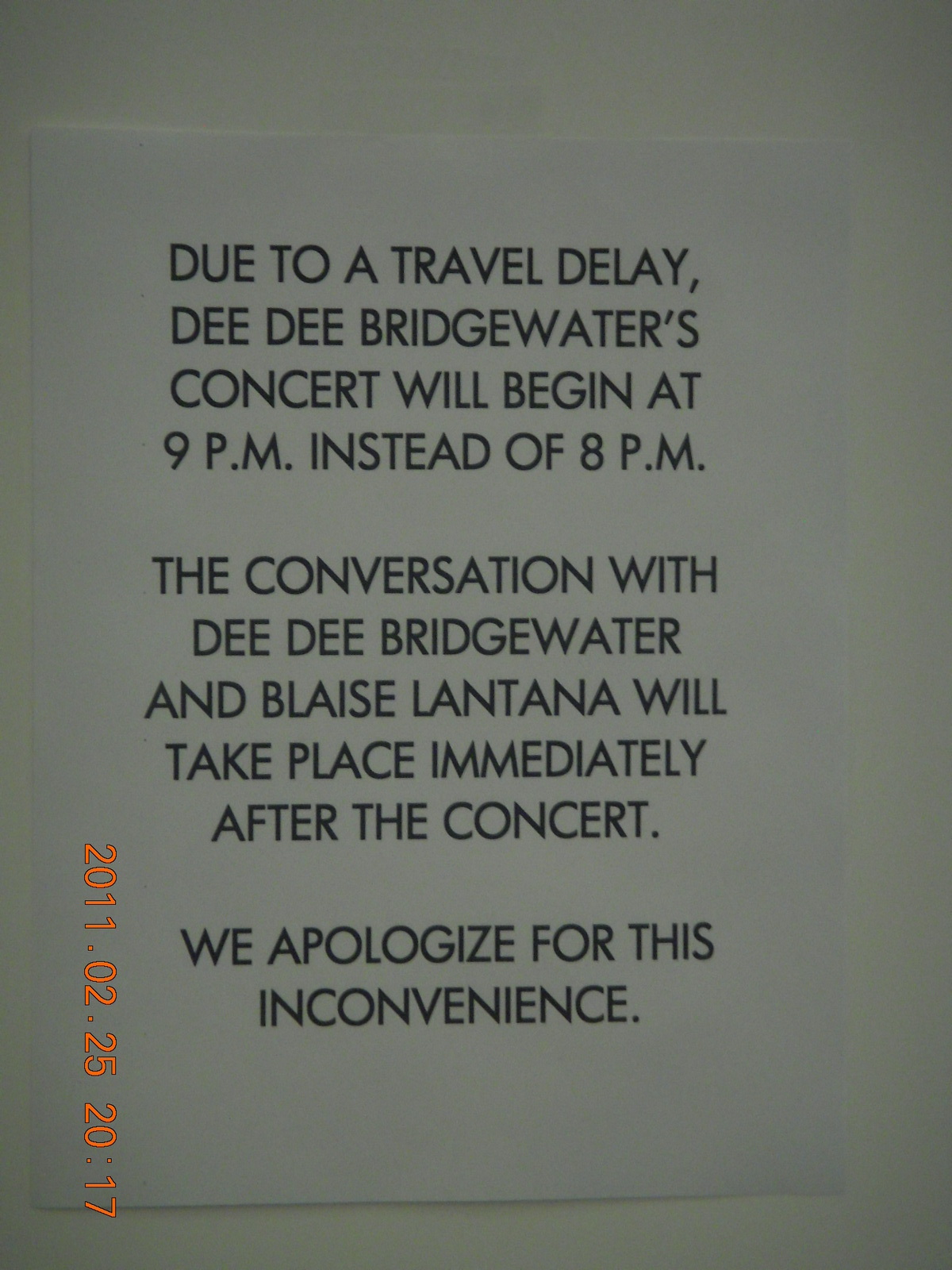 Marble Canyon - Navajo Bridge late concert sign in Scottsdale, Dee Dee Bridgewater 9:00