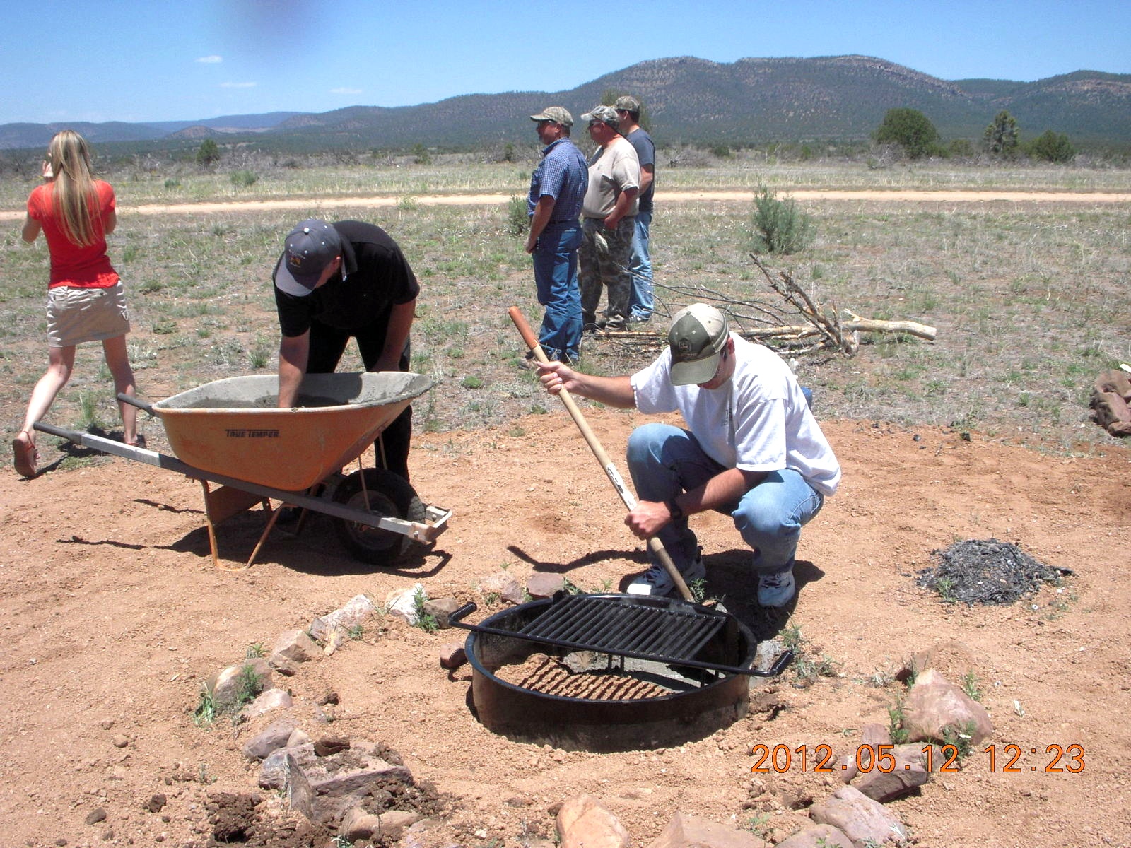 5399. aerial - 'Young International' airstrip (AZ24) - making cement for fire pit