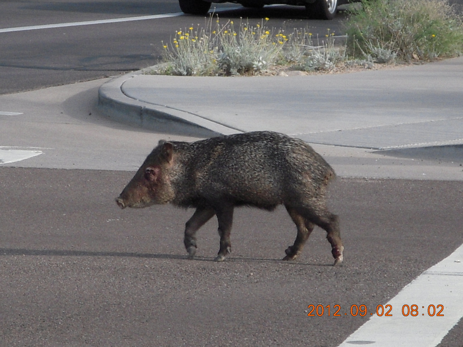 Mesa Verde National Park - Larry J taking a picture javelena - 'little piggie in the road'