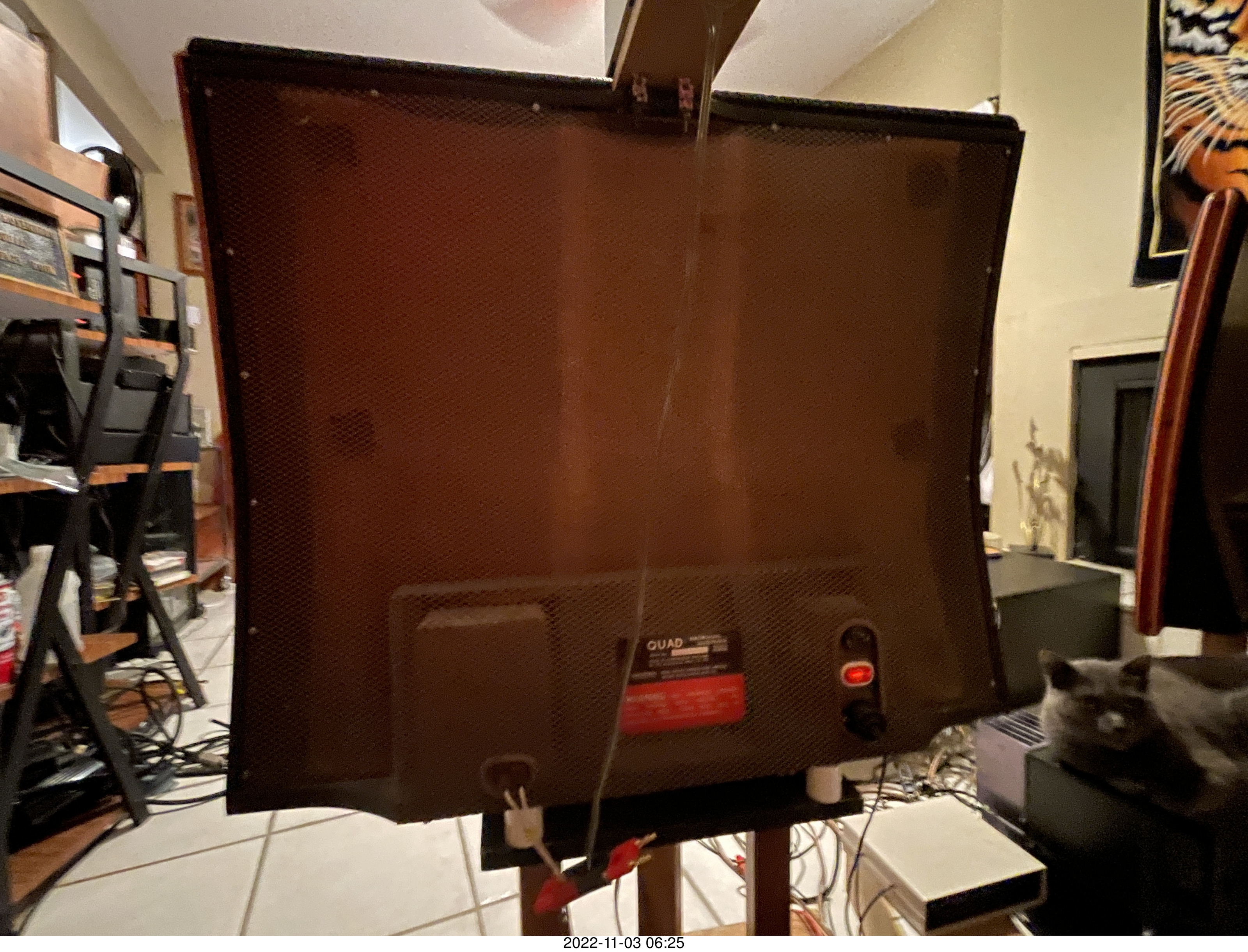 241. my cat Jane on my Eagle 2 amplifier behind my Quad ESL
