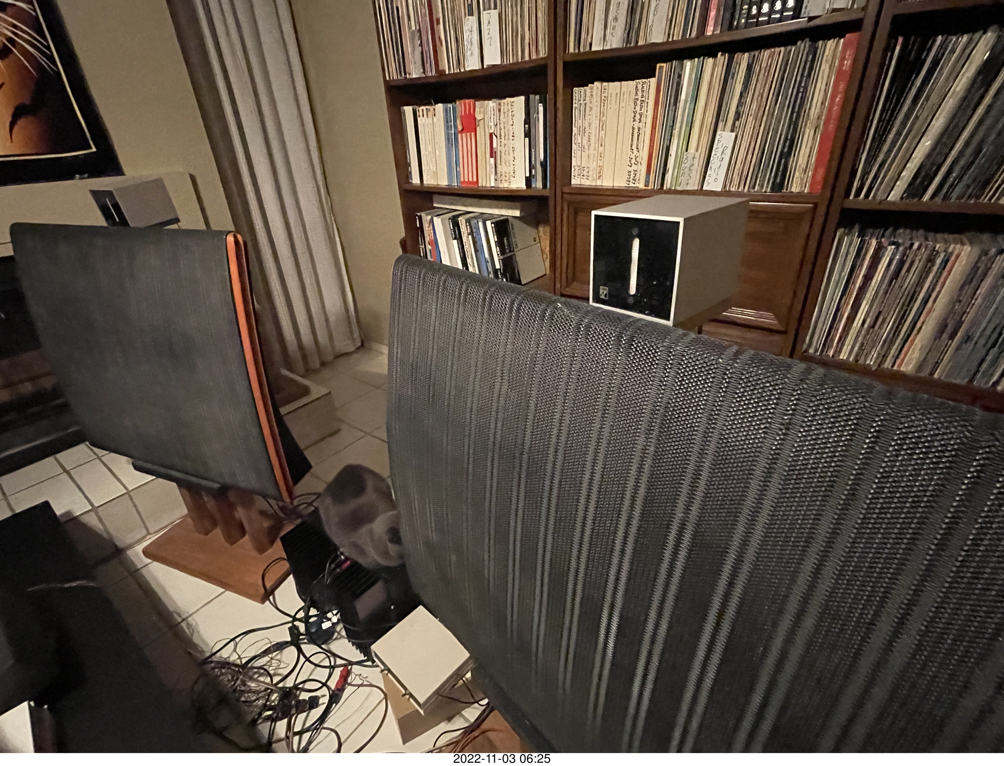 243. my cat Jane on my Eagle 2 amplifier between my Quad ESLs