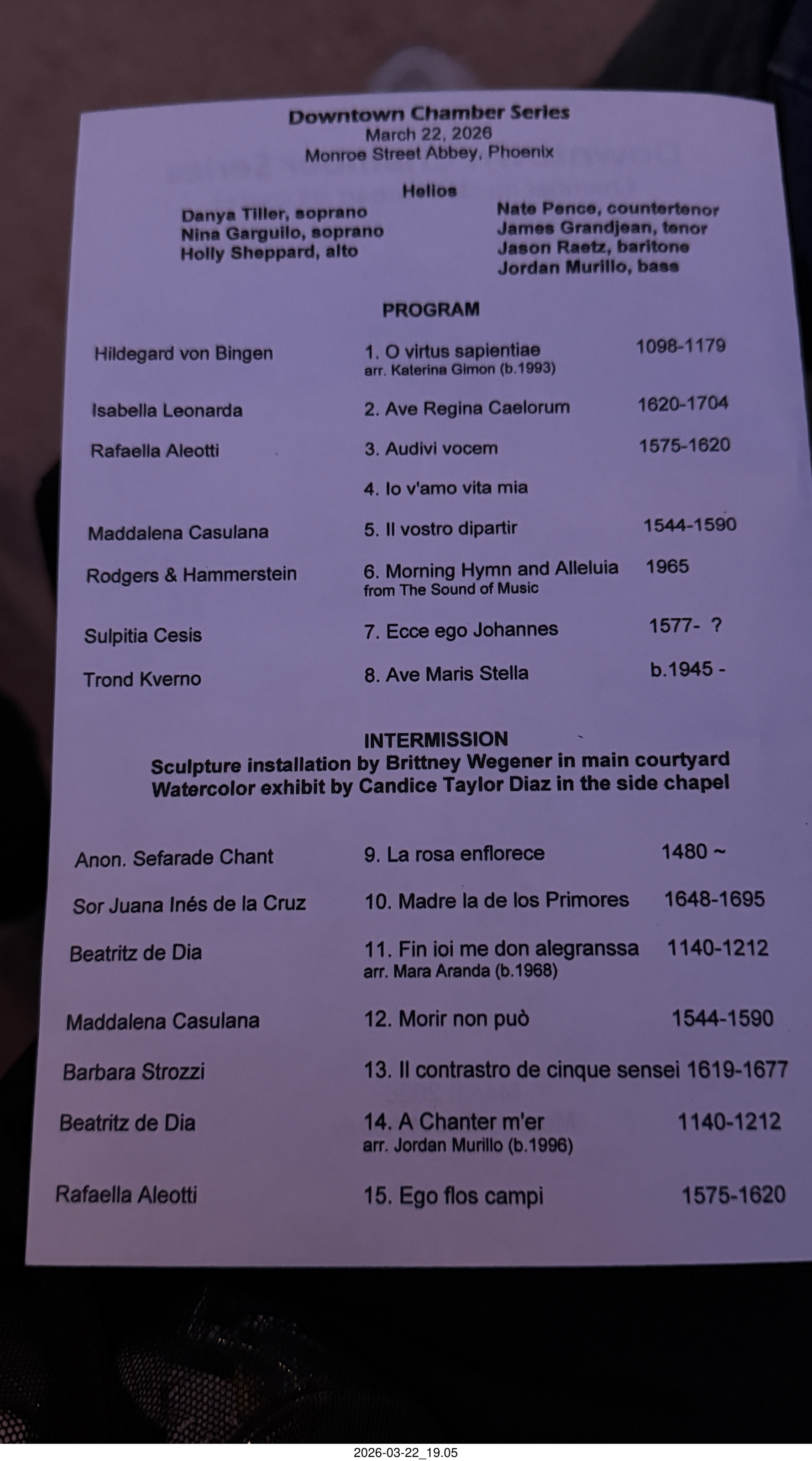 1. Phoenix - Monroe Street Abbey - Downtown Chamber Series - Helios - program