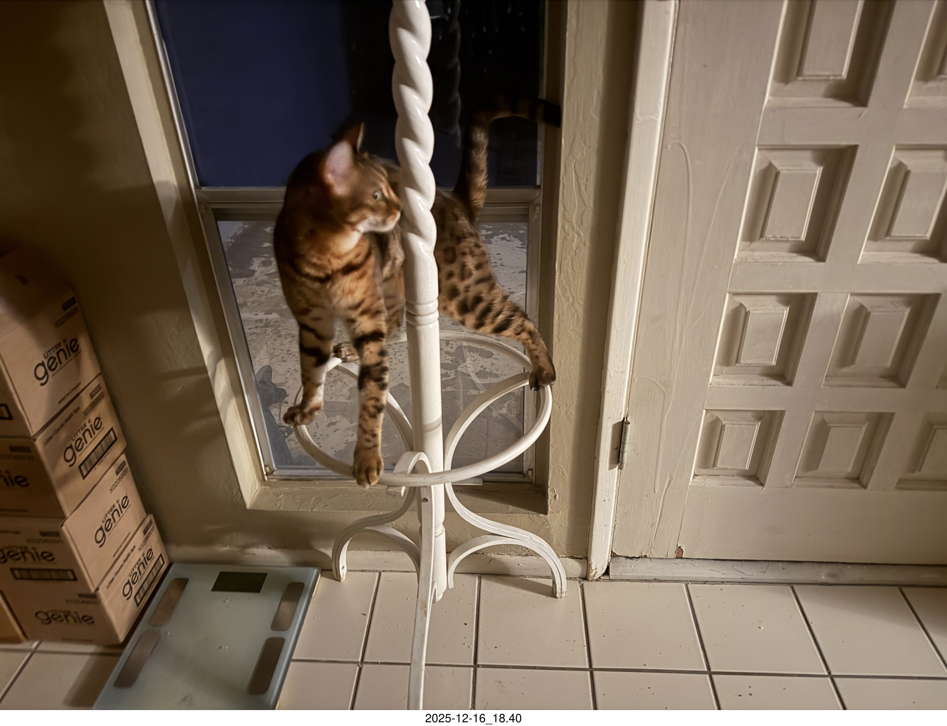 9. cat Pickle on my coat rack